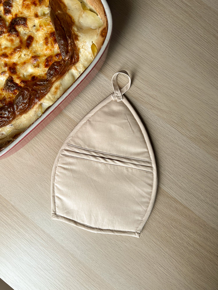 À la fois décorative et pratique, elle protège efficacement de la chaleur grâce à sa ouate isolante et devient un joli élément de décoration qui ne passe pas inaperçu.